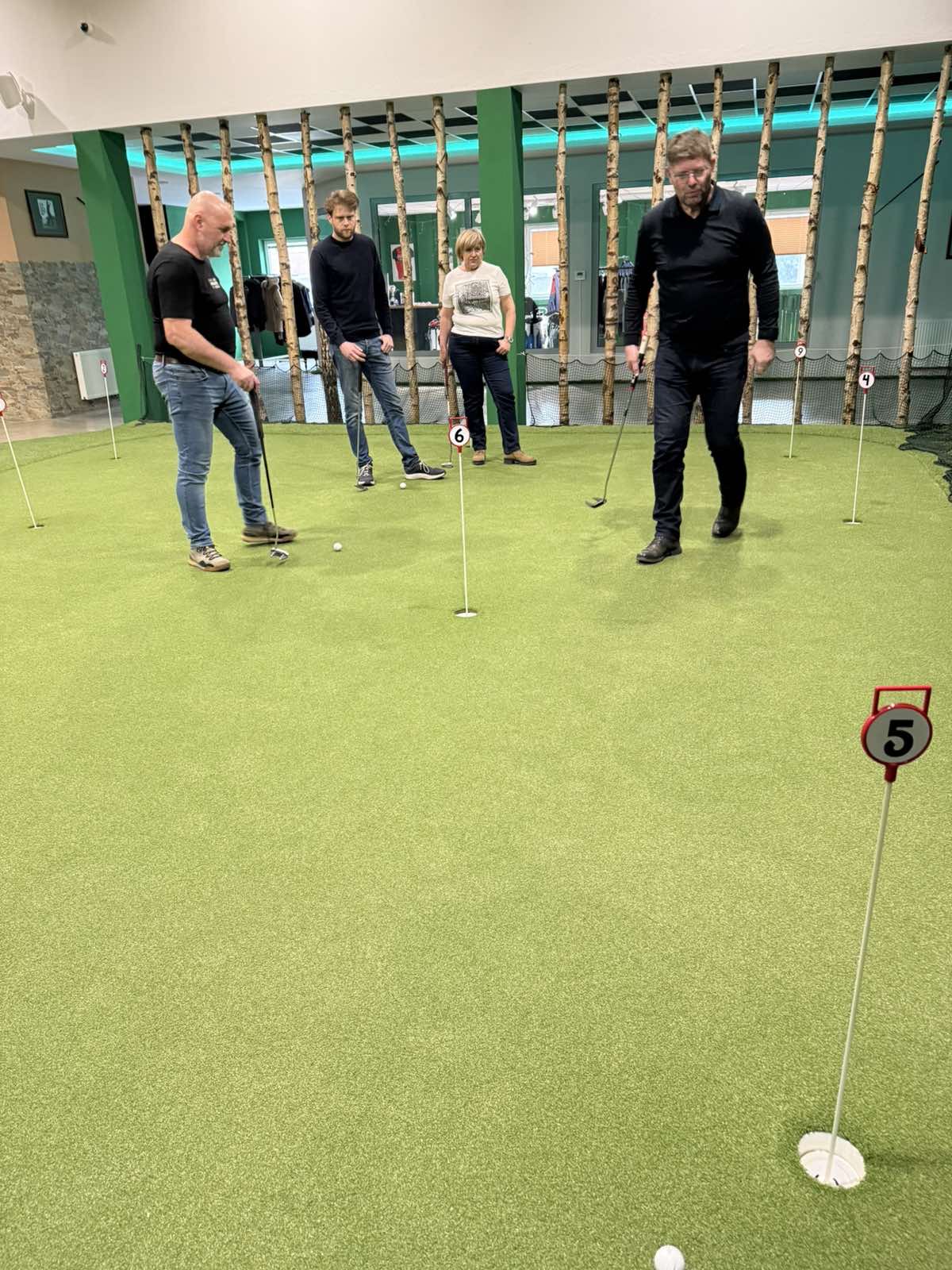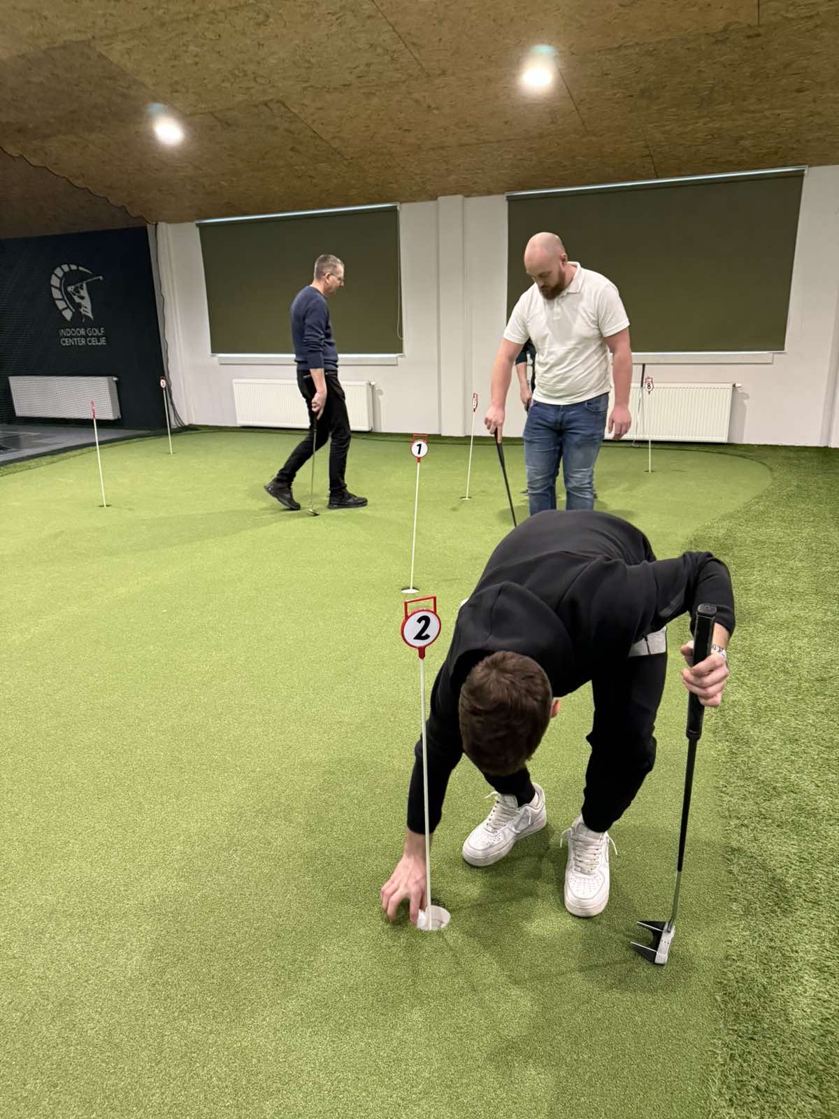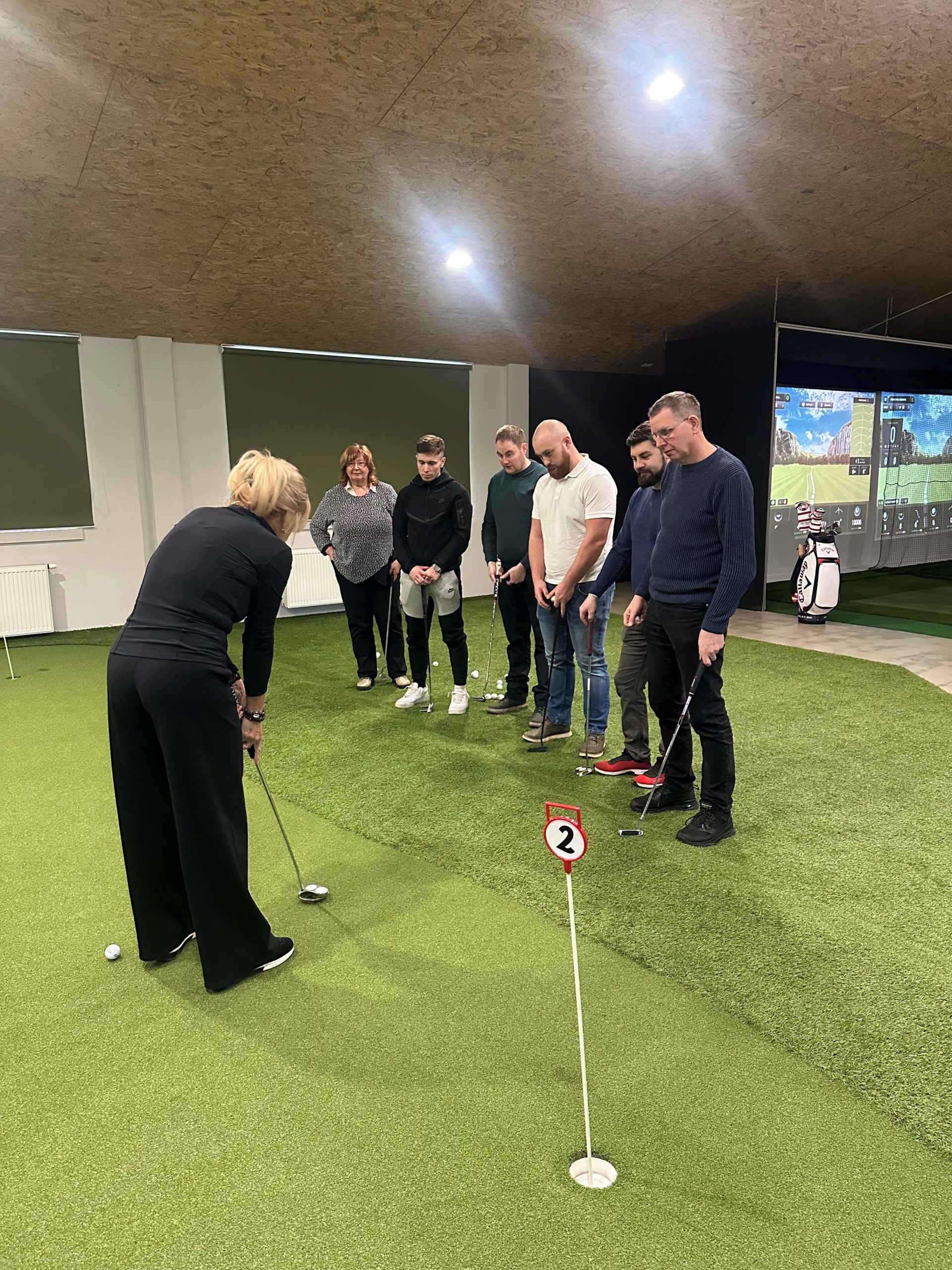Malo golfa za začetek Dan smo začeli z indoor golfom. Brez skrbi, nismo postali profesionalci – šlo je predvsem za zabavo in preizkušanje nečesa novega. Spoznali smo osnove, malo povadili udarce, nato pa se pomerili v patanju. Tekmovalnost je bila ravno pravšnja, da smo se nasmejali in spodbudili drug drugega.
